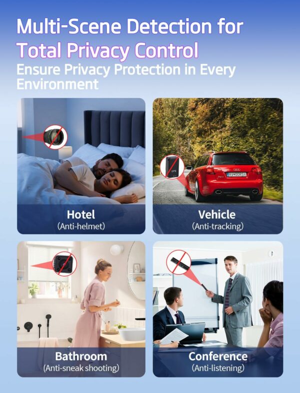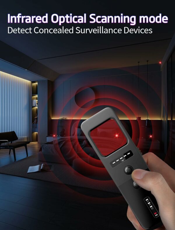 ✅【Multi-Mode Professional Detector】Integrates multiple detection modes, supporting wireless WiFi signal, magnetic, GPS, infrared light, wired and wireless camera detection. Ideal for various privacy protection scenarios, providing a comprehensive monitoring detection solution.