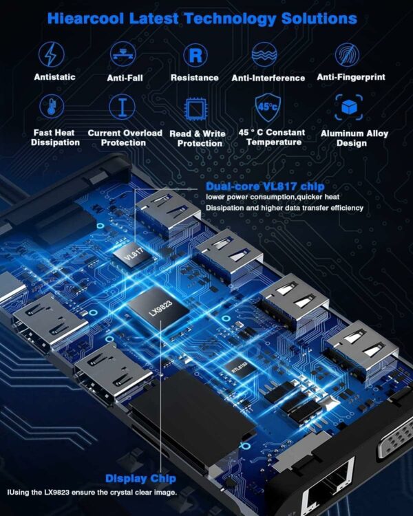 Industry Leading Technology: Hiearcool intelligent USB C Hub incorporates a triple display, lightweight, portable and powerful with multi-ports to achieve multi-display (mirror mode/extend mode/video wall mode)