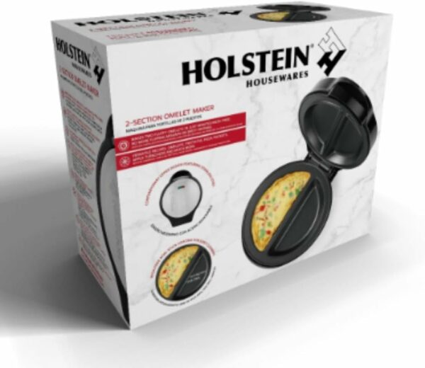 Make the most out of breakfast, lunch or dinner with Holstein Housewares Omelette Maker. Cook two fluffy omelettes in just a few minutes by simply pouring in the mixture, adding your favorite toppings and delicious omelettes will be ready to enjoy shortly after. Recipe options are endless, from omelettes and frittatas, to pizza pockets and apple turnovers. These alternatives are a quick and easy way of getting kids and adults to eat a hearty and healthier meal on-the-go before or after school/work. Lets’ start the morning with a full tummy to fuel you with energy for the rest of a busy day. The Holstein Housewares Omelette Maker has a non-stick coating for easy cleanup and a contemporary design featuring stainless steel that will add a modern touch to any kitchen.