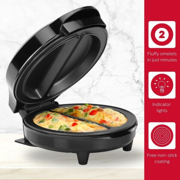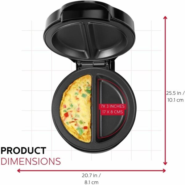 MANY DELICIOUS CHOICES – Makes two fluffy omelets in just minutes. And this handy maker isn’t just for omelets: you can make frittatas, pizza pockets, apple turnovers and so much more! You can make two customized individual portions at a time to satisfy everyone’s breakfast, lunch, or dinner requests