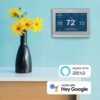 The WiFi Smart Color Thermostat works seamlessly with Amazon Alexa and Google Home, as well as our mobile app, so you can control the temperature from anywhere