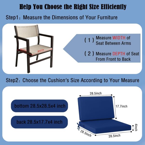 Comfortable Resilience Foam: The bottom cushion is made of 4″ medium firm memory foam, providing softness and support. Patio furniture cushions quickly rebounds and maintains its original thickness even with prolonged use, allowing for relaxation of the buttocks.