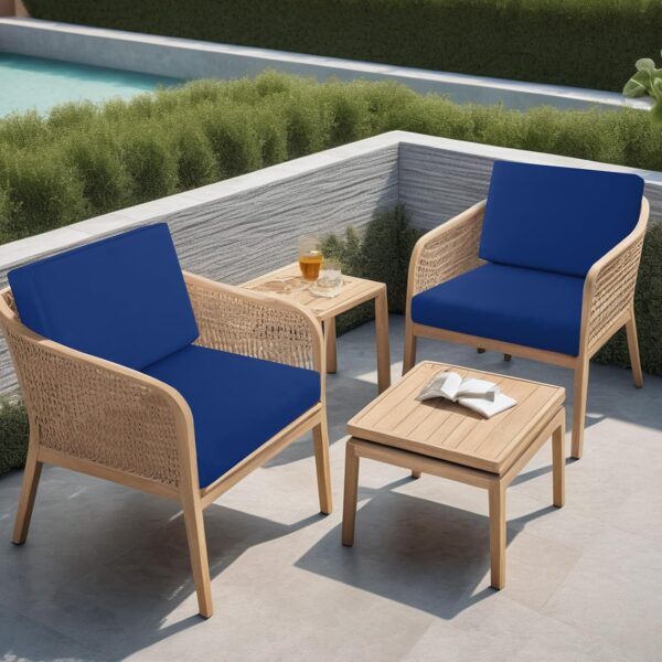 Water-resistant Cushion Cover: Our outdoor seat cushions are made of water-resistant and durable fabric, specifically 300GSM high-density polyester. Both materials have excellent waterproofing properties, and the double layer of protection enhances their water resistance.