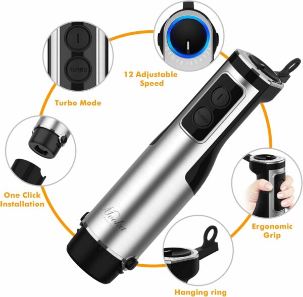 Limitless Power: Chop, puree and mix all ingredients to perfection in a flash with 1100W heavy-duty immersion hand blender copper motor. 12-speed/Turbo blending presets give you max control over your cooking.