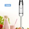 700W Powerful Motor:Equipped with an incredible 700 watts of power, the submersible hand blender perfectly blends ingredients to easily create shakes, smoothies, baby food, purees, juice jams and more.Stainless Steel Body and Blades:The stainless steel body has better durability, is not easy to scratch, and is more aesthetically pleasing. The stainless steel blade can stir hard food effortlessly.3-in-1 Functionality:Immersion blender is equipped with accessories such as egg beater and milk frother, and has various functions to meet different needs in the kitchen.Humanized Design:The ergonomically designed handle can provide you with a non-slip and comfortable grip, you can easily grasp the handle and operate it freely even with only one hand.Dishwasher-safe: All other accessories are dishwasher safe (except the motor),which make you easier to clean thoroughly, and you can place it in the top rack of the dishwasher with running water.