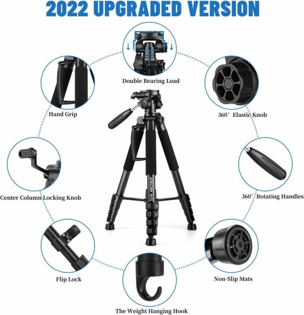 【Durable & Horizontally Stable】Professional tripod for camera and phones provides ultra stability and steadiness for various terrain. Rubber feet provide a firm grip strong friction. Thicker tube makes the tripod more torsional resistant & anti-shaking