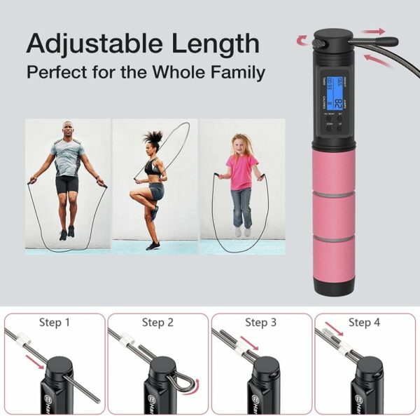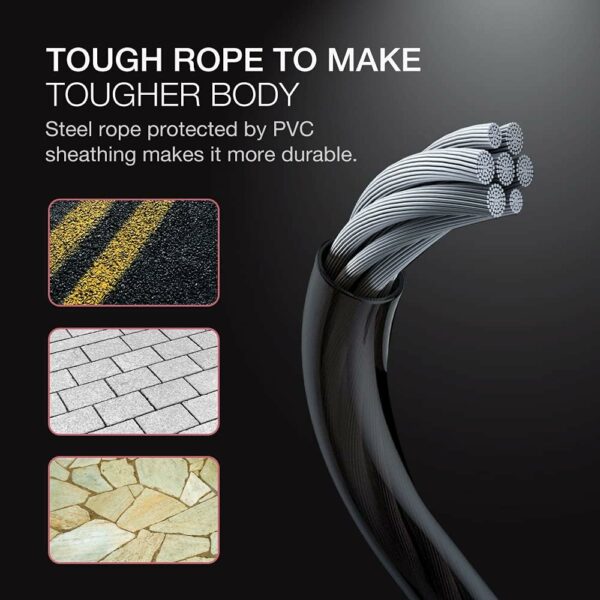 Durable and Adjustable Length Steel Rope: Durable steel rope protected by premium PVC sheathing to avoid cracking or breaking. This rope is built to last. This jump rope is adjustable and can be adjusted quickly according to your height. Suitable for both adults and children.