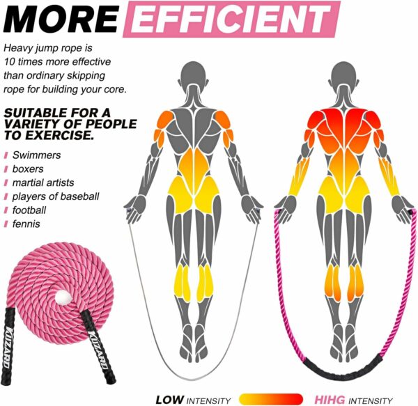 Accelerate Fitness Goals: 10 minutes of intense jumping with our weighted rope equals 30 minutes of running. It’s 10 times more efficient at working your core than a standard rope, ensuring quick strength gains