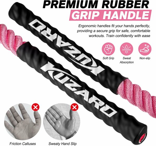 High Quality Design: Anti-slip handles made from quality polyolefin provide a secure grip and protect your wrists and palms during exercise. Paired with a durable polymer fiber rope, the KUZARO Jump Rope is built for comfort and resilience