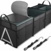 PREMIUM CAR TRUNK ORGANIZER WITH COOLER BAG – The K KNODEL Trunk Organizer is best for all kinds of vehicles. It is great for carrying and organizing tools, groceries, emergency equipment, toys, foods, sporting goods and so on. With premium foldable cooler section, you can keep your drinks and foods COOL or WARM. Moreover, its reflective stripe makes it more secure when you are carrying it at night.