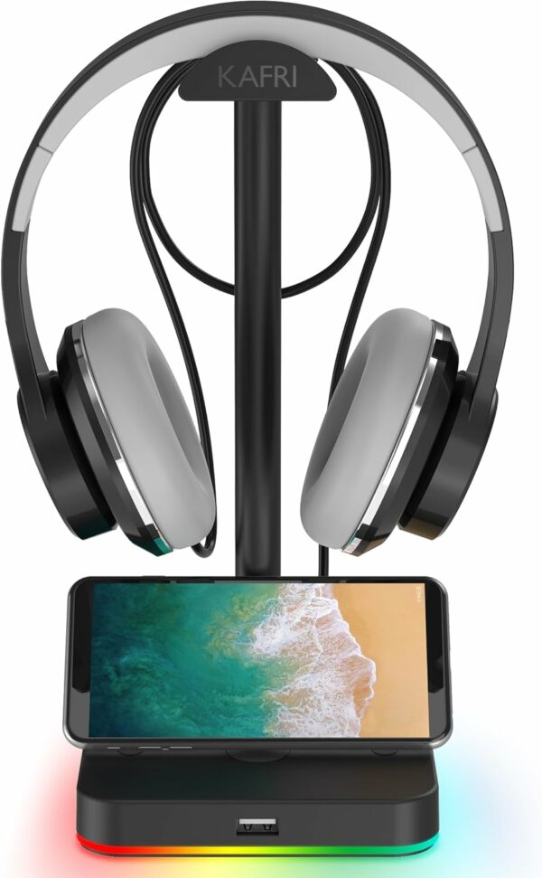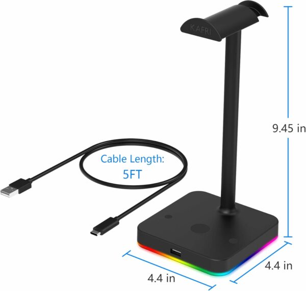 【RGB LED lights】KAFRI RBG Headphone Stand can display 9 lighting effects modes, up to 16.8 million colors to creat an amazing gaming atmosphere at your preference. that can be selected merely by pressing a Touch switch. Great gifts for Son, Boys, Men, Husband and boyfriend.
