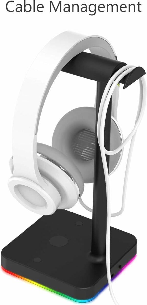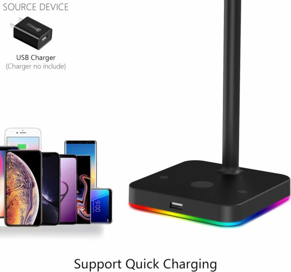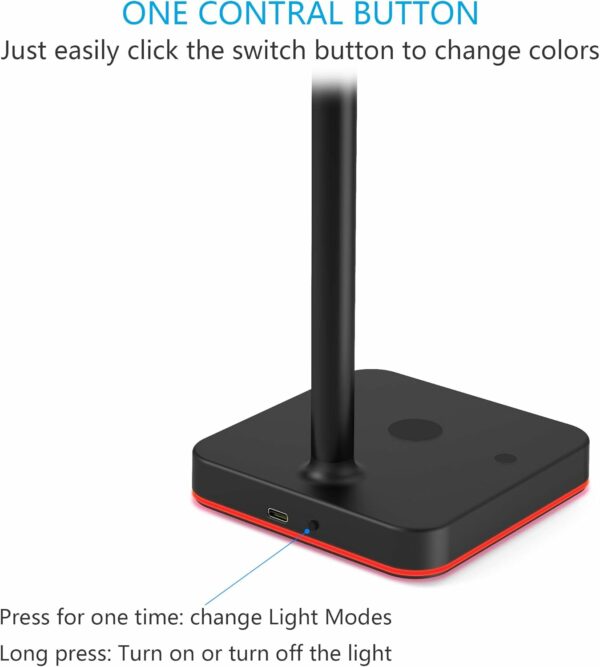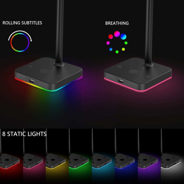 This gaming Headphone stand has RGB Color changing. It can display 9 fantastic lighting effects that can be selected merely by pressing a button. You can enjoy different light modes in different scenes.