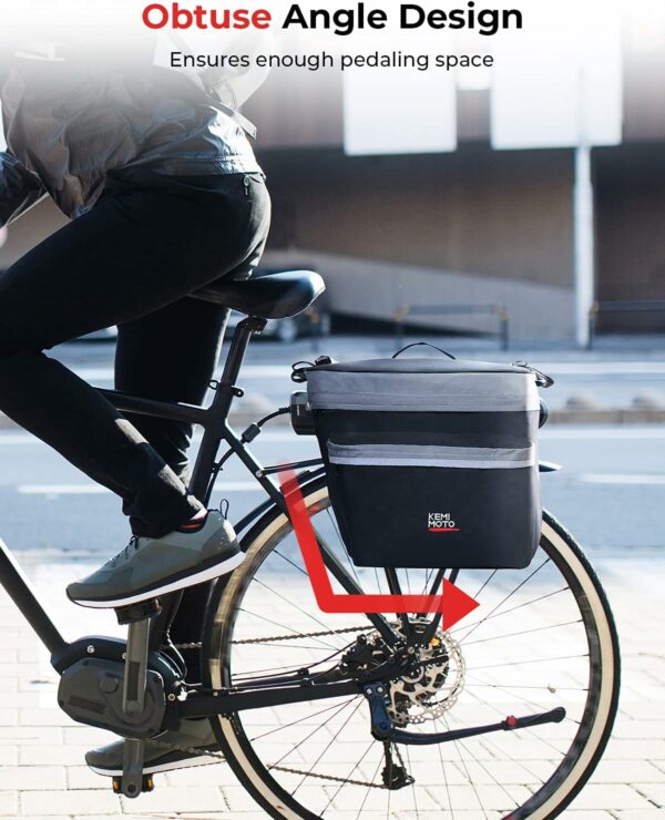 Obtuse Angle Design – Obtuse angle design for two side bag ensures enough pedaling space. Wouldn’t hitting heel while riding. Providing you with a comfortable riding experience.