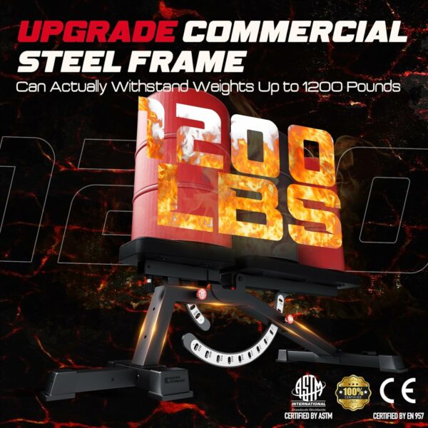 Upgraded Multi Functional Weight Bench – With a weight capacity of 1200 lbs. The frame of weight bench is made of 2.7”*1.9” commercial thickness steel to ensure safety and durability during high intensity workouts.