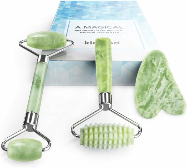A jade roller that supports lymphatic drainage to reduce the appearance of puffiness, and wrinkles.