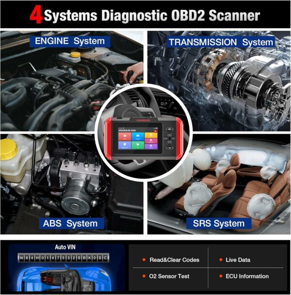 🚩 【Enhanced 4 Systems Diagnostic Tool 】KINGBOLEN S500 OBD2 Scanner can scan ABS, SRS(airbag), Engine(ECM) and Transmission (TCM/Trans) Systems to view Live Data Stream of multiple sensors, read and clear Fault Codes, turns off Warning Light. It also One-click generates a complete Automotive Diagnosis Report to record the information or share with email. This car diagnostic code reader can help Mechanics to repair the vehicle’s failure, and permanently F-ree upgrade the Latest Version
