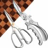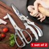 2 pack kitchen shears heavy duty can meet all the needs of your kitchen.Kitchen scissors set include 1 poultry shears heavy duty professional and 1 kitchen food scissors.Heavy duty poultry shears can be used to handle hard ingredients such as bones, chicken ribs, Chicken feet,large turkeys, etc.Wave shaped blades can remove fish scales.With Bottle opener function. Silver kitchen meat scissors can be used to handle soft items, such as steak, meat,ham, vegetables, herbs, packaging bags, etc.