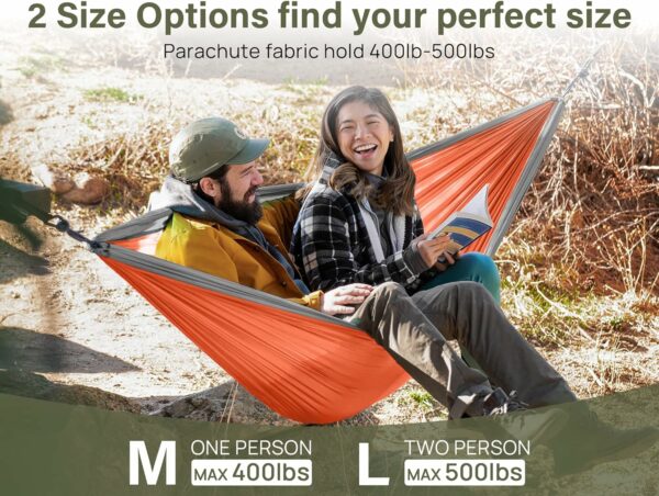 500 lbs Capacity for Double Hammock: The double hammock has an unfolded size of 120”L X 78”W and can support up to 500 lbs, making it perfect for accommodating two adults or anyone wanting some extra space. It is an ideal camping accessory for outdoor enthusiasts who enjoy hiking, camping, exploring, and other outdoor activities. They also make perfect gifts for anyone who loves the outdoors.