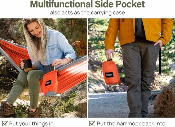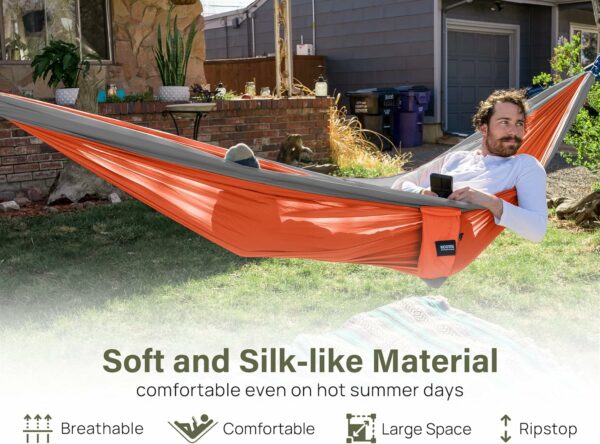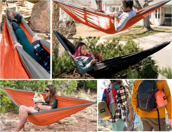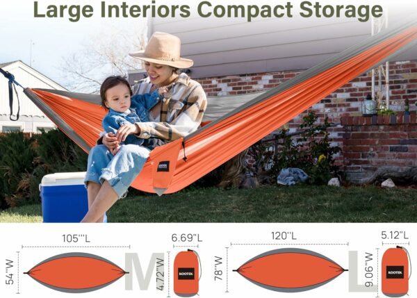 Lightweight and Convenient: With a bundled size of 8.7*5.1*5.1 inches and a weight of only 2.2 lbs, the double hammock can be easily folded into a small attached sack. This makes it extremely convenient to carry and ideal for anyone who loves to travel light. In addition, it can be a perfect gift for special occasions like birthdays, weddings, and anniversaries, Mother’s Day!