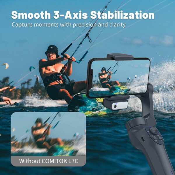 [Magnetic AI Tracker with Adjustable Fill Light] Comitok L7C Pro KIT Phone Gimbal Stabilizer is equipped with an advanced AI tracker that weighs only 16g and is easy to carry around without Bluetooth connection and App limitations. The detachable tracking unit’s magnetic design sets it apart, offering superior 180-degree switching in forward and reverse modes. The phone gimbal provides gesture control function with 3 different color temperatures and 9 levels of brightness settings to suit different lighting preferences for gimbal photography.