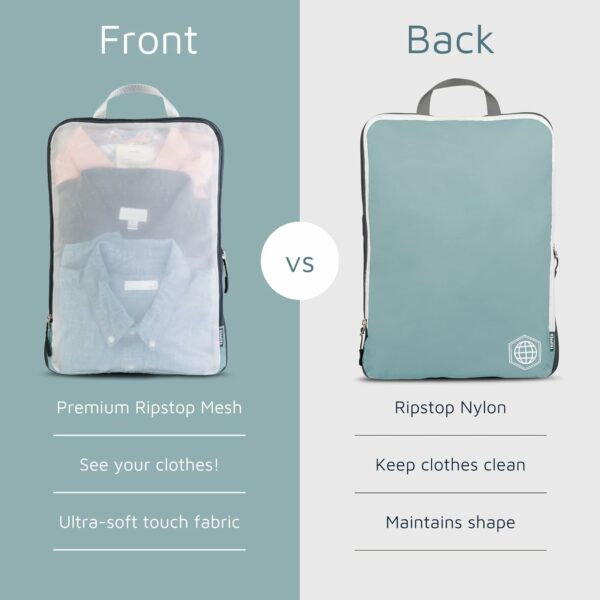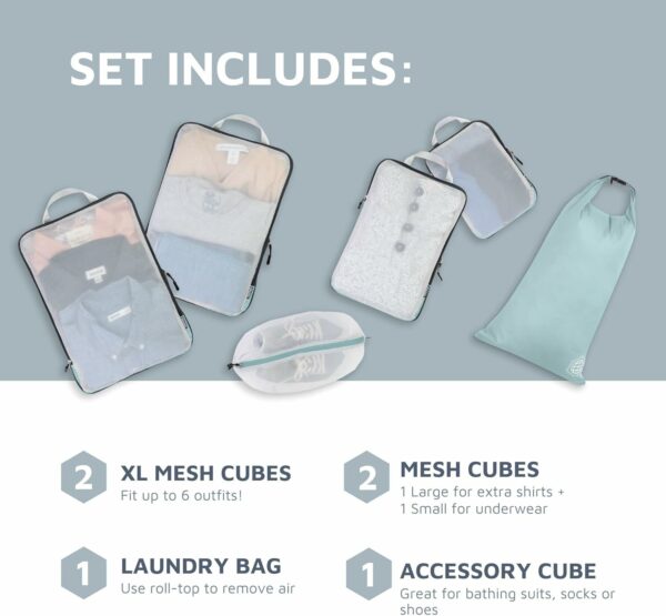 LUGGAGE ORGANIZER- See through mesh makes organization easy. Keep different outfits in separate compression cubes and always be ready for what’s next! Easily pack away clothing like raincoats/heavier jackets that are not used as often.