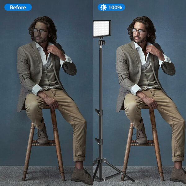 The light panel consists of 66 energy-saving LED lamps for excellent lighting. It does not flicker even at low brightness.The brightness can be adjusted from 10% to 100%. This is ideal for providing extra light for taking photos, videos, selfies and live streaming, etc.