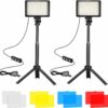 ❤The USB LED video light kit contains: (2)USB LED Panel Light with USB Cable, (2)Mini Tripods, (2)White Filter, (2)Yellow Filter, (2)Blue Filter, (2)Red Filter