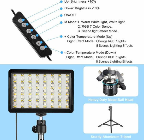 【Convenient USB/Remote Control】: Use the USB led camera lights kit via any 5V/2A adapters or remote control. Press the USB button or remote control to switch the lighting mode and control brightness and color temperature. RGB video light for streaming’s remote control distance can reach 15M.