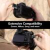 Extensive compatibility with a variety of cameras and other devices, including Canon, Sony, Nikon, and more