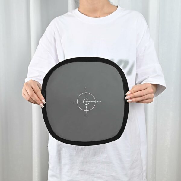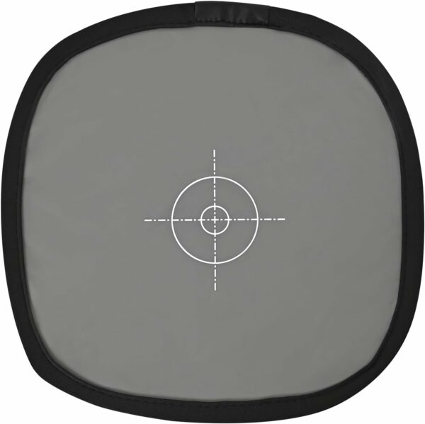The gray side of the panel has a target in the center so that your lens can find a focus point.The panel collapses to just 1/3 of its full size, allowing it to fit in most camera bags.A zippered storage sleeve is included to keep the panel collapsed during transport.