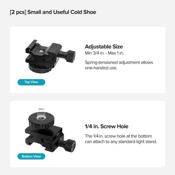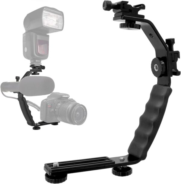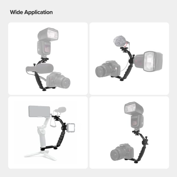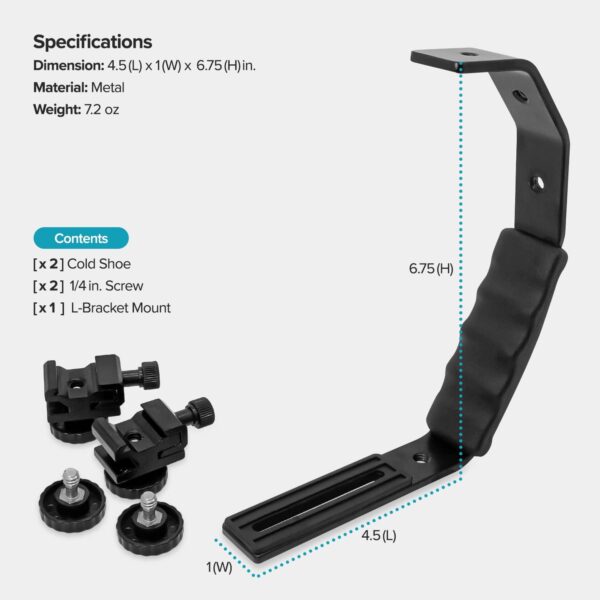 【FLASH HOT SHOE MOUNT & 1/4″ THREAD 】 L-bracket can hold most photo light equipment, such as flash light, LED light panel, microphones and more. 1/4″ thread to Fit Any Standard Camera or Camcorder.