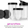Included: (1) 250W motor base, (1) cross-blade, (1) tall cup, (1) short cup, (1) party mug, (2) lip rings, (2) Stay-Fresh resealable lids, (1) to-go lid and 10-second recipe guide.
