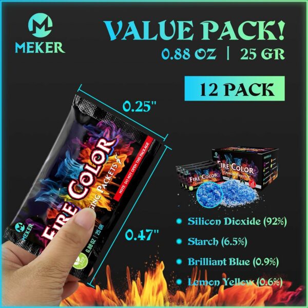 Each MEKER Fire Color Changing Packets are designed to provide an extended color display, ensuring that the vibrant hues continue to enchant and captivate throughout the burning process. This longevity adds value to the product, allowing users to enjoy the color-changing effects for a substantial period.