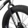 Conquer any terrain effortlessly with the fat, knobby 4-inch wide mountain tires that effortlessly roll over obstacles, while the light and strong 4″ alloy rims provide durability and agility