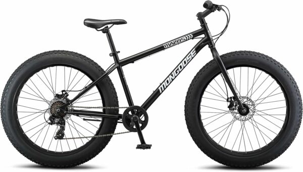 Comfortable and stable ride with a steel mountain-style fat tire frame and 26-inch wheels, fit to riders 5’4″ to 6’2″ tall