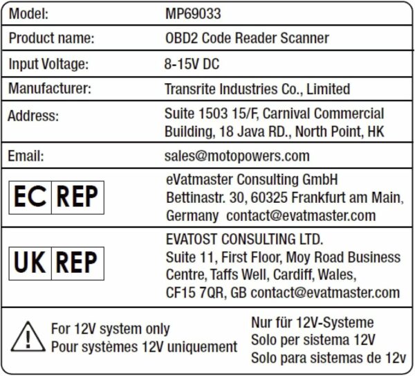 LCD Display – Designed with a clear display LCD screen (128 x 64 pixels) – white backlight and contrast adjustment. No need any battery or charger, OBD reader gets the power directly from your vehicle through the OBDII Data Link Connector.
