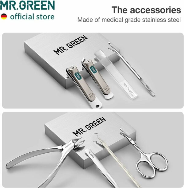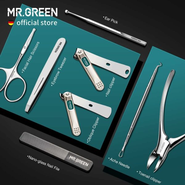 2.List of accessories for this tool kit:Nail Clipper, Oblique Clipper, Olecranon toenail clipper, Facial Hair Scissors,Nano-glass Nail File, Eyebrow Tweezer, Blackhead removal, Ear Pick.