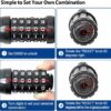 CONVENIENT TO USE: Combination locking mechanism provide keyless convenience and set your own password by easy steps. With keyless convenience lock, you don’t worry about lost the key and forget to carry it.Code design saves you from the hassle of carrying keys. The code is resettable – there are 10,000 combinations you can set, which makes the chances to crack the code only 1/10,0000. The default code is 00000. NOTE: When setting your new password, please first keep the digital wheel in the correct unlock password state before turning the reset disk. Turn the reset disk 90° to set a new password.