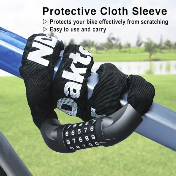 SCRATCH-PROOF FABRIC PROTECTION: The bicycle chain lock is wrapped by a high quality polypropylene fabric, which is scratch-proof and wear-resistant, anti-hot and anti-icing hands; it protects the chain and prevents it scratching your bicycle frame, long lifespan.