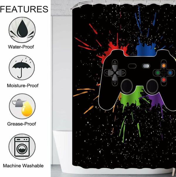 BEST MATERIALS: Oxford Polyester Fabric, odorless friendly keeps your curtain looking clean and fresh longer. Game bathroom shower curtain sets with rugs advanced HD pattern printing technology, the image clearly, make your room more fresh and have a new look.