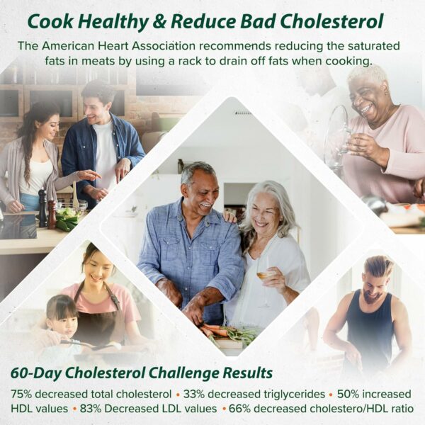 REDUCE BAD CHOLESTEROL – The American Heart Association recommends that one way to reduce the saturated fats in meats is to use a rack to drain off the fat when cooking. That is precisely how Pro Plus 2 cooks. A 60-day trial has shown that 75% of participants effectively decreased their cholesterol levels when doing nothing but cooking with the Nuwave Oven.