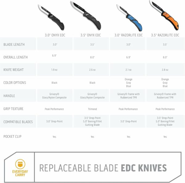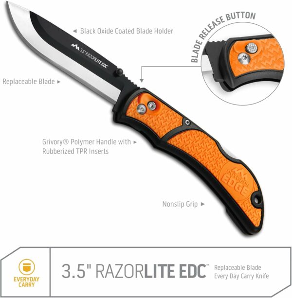 POCKET KNIFE WITH RAZOR-SHARP REPLACEABLE BLADES – Replacing blades is quick and effortless! Whenever a blade becomes dull, simply remove it and insert a new one with a razor-sharp edge. This EDC knife is perfect for everyday use or as a hunting knife to skin and field dress your deer.
