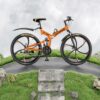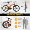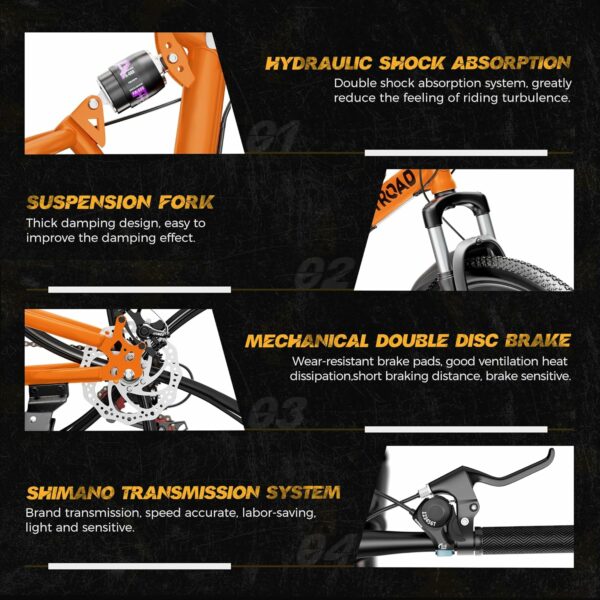 ✔Folding bike with high carbon steel mountain bike dual suspension frame. 21-speed gears, allow you to switch through the gears very quickly with your fingertips, so you can quickly select a gear for every terrain. Enjoy different speed cycling experiences, like a wind chaser.