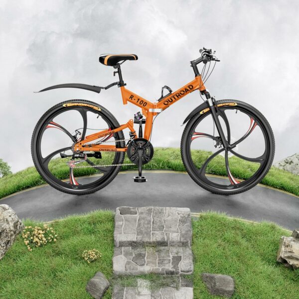 ✔A foldable mountain bike with 26-inch wheels, 17-inch frame, 6-spoke fashion rims, safer and fastness. Adjust the suitable seat height, brakes, and transmission according to the instructions. Note: the handlebar height is fixed.