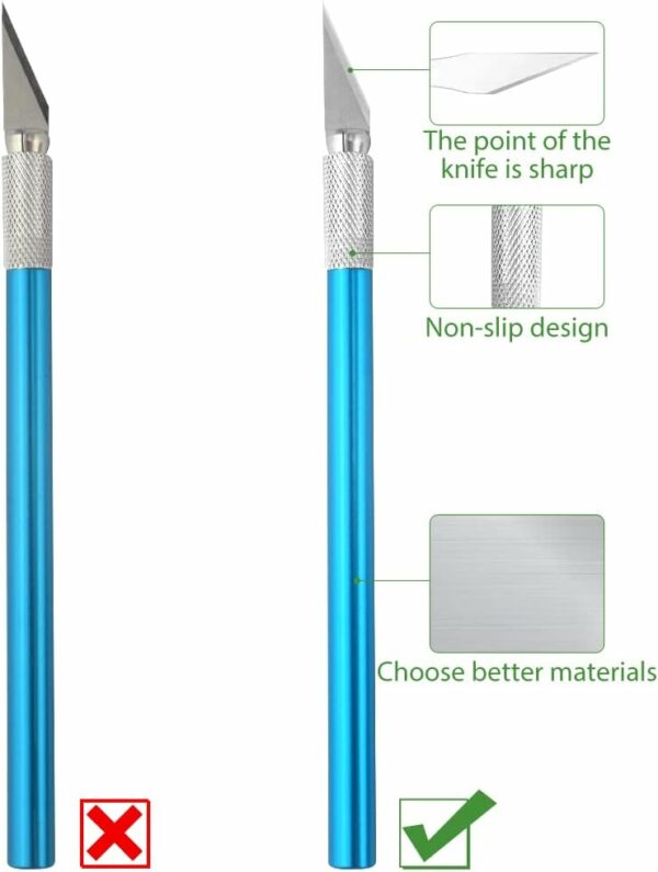 1 pcs carving knife and 5 pcs blades. More blade configurations can make your work No worries. The knob change blade allows you to enjoy cutting various parts with ease and pleasure.
