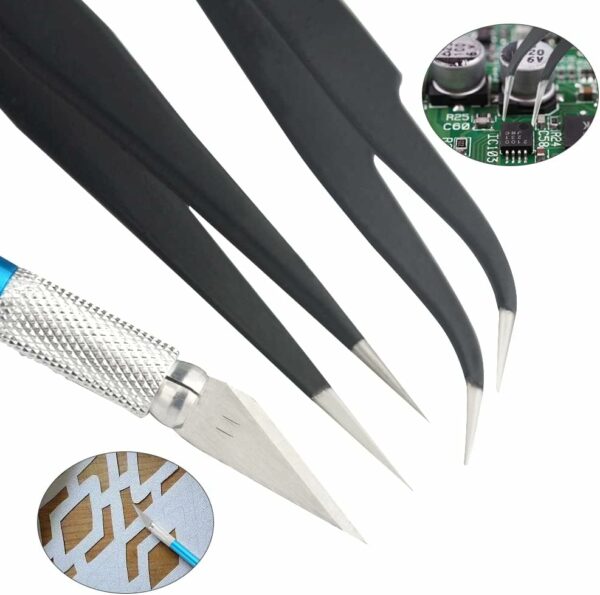● FULL RANGE AND COST EFFICIENT—Package include : 1 X side pliers, 2 X tweezers, 1 X File, 1 X Pen knife and 5 X blade, 2 X double-sided polished bar, 1 X Plastic box.