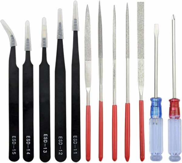 ● FULL RANGE AND COST EFFICIENT—Package include : 4 X Sandpaper;1 X Cutting pad;1 X Electric grinding machine and 5 pcs Grinding head;2 X Screwdriver;5 X Files; 1 X Separator; 1 X Steel rule; 7 X Polishing Block; 5 X Tweezers;1 X Graver and 1 Box Blade;1 X Diagonal Pliers;1 X Hand drill; 1 X 10pcs Drills.