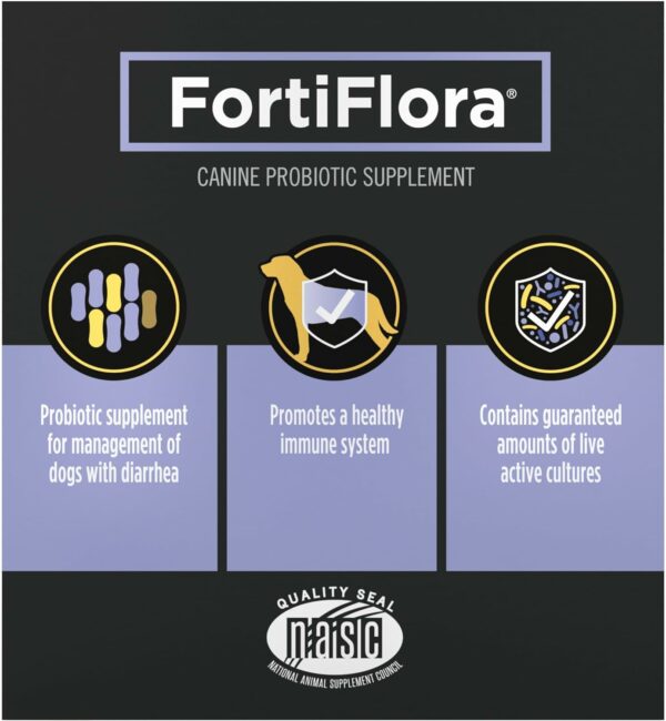 Provide specialized support for your dog by introducing Purina Pro Plan Veterinary Diets FortiFlora Probiotic for Dogs Powder Supplement to their diet. This FortiFlora Purina probiotics for dogs contains a strain proven to promote intestinal health and balance. Formulated for the dietary management of dogs with diarrhea, this safe and effective probiotic digestive support dog food supplement powder is simple to administer by adding it to your dog’s regular food. Each packet of these digestive dog food supplements contains a guaranteed level of live microorganisms that help promote beneficial intestinal microflora. A proprietary microencapsulation process helps enhance the stability and survival of the probiotics until they reach your dog’s intestinal tract. This probiotic supplement contains antioxidants and also offers immune support for dogs. These gentle digestive probiotic for dogs also helps reduce gas in dogs. FortiFlora probiotics for dogs are appropriate for administration to both puppies and adult dogs.