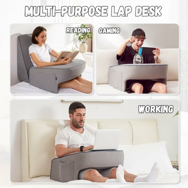 Relax Your Arms: Extra large adult reading pillow with arm rest can be used as a lap desk for bed; it is larger and more comfortable, with arm support to relax the strength of your arms and a flat desktop to work on your computer.