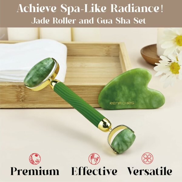 SPA-LIKE RADIANCE: With Rena Chris jade roller gua sha set, you can enjoy the benefits of a SPA-like radiance in the comfort of your home; using the set will help you improve blood circulation, reduce puffiness and tighten the skin